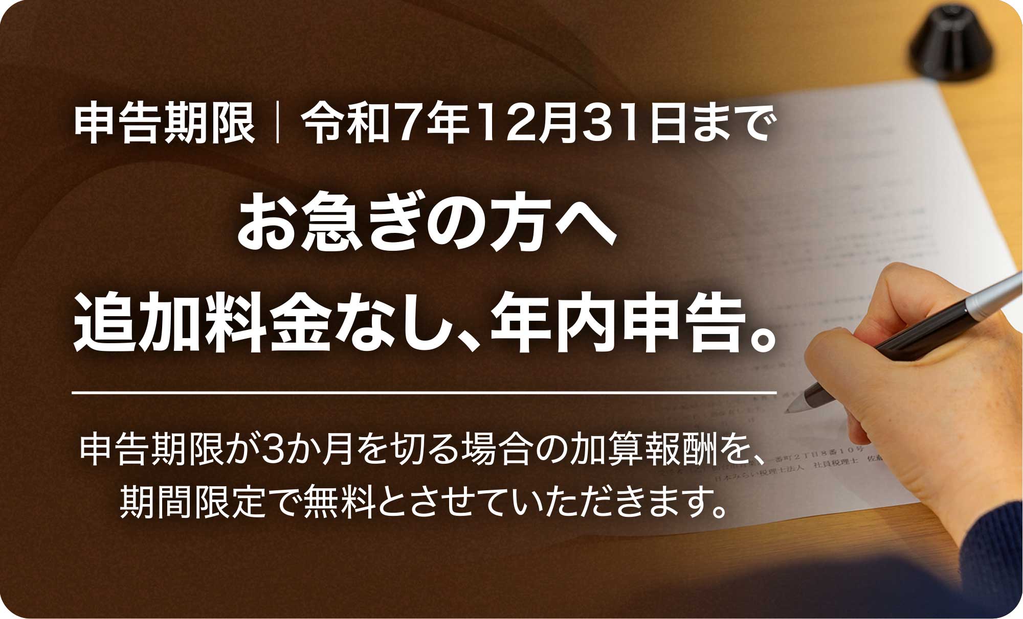 【申告期限令和7年12月31日までの方限定】追加料金なしで年内申告いたします。