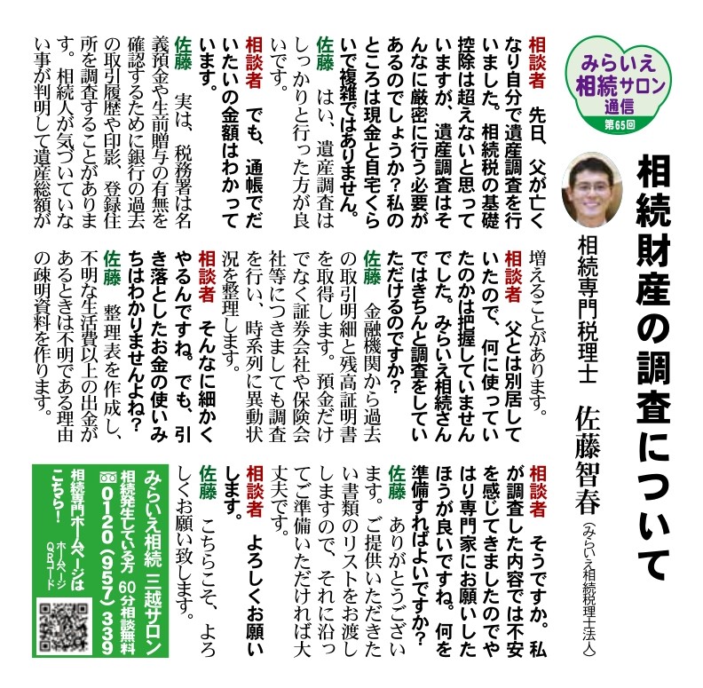 佐藤:はい、遺産調査はしっかりと行った方が良いです。