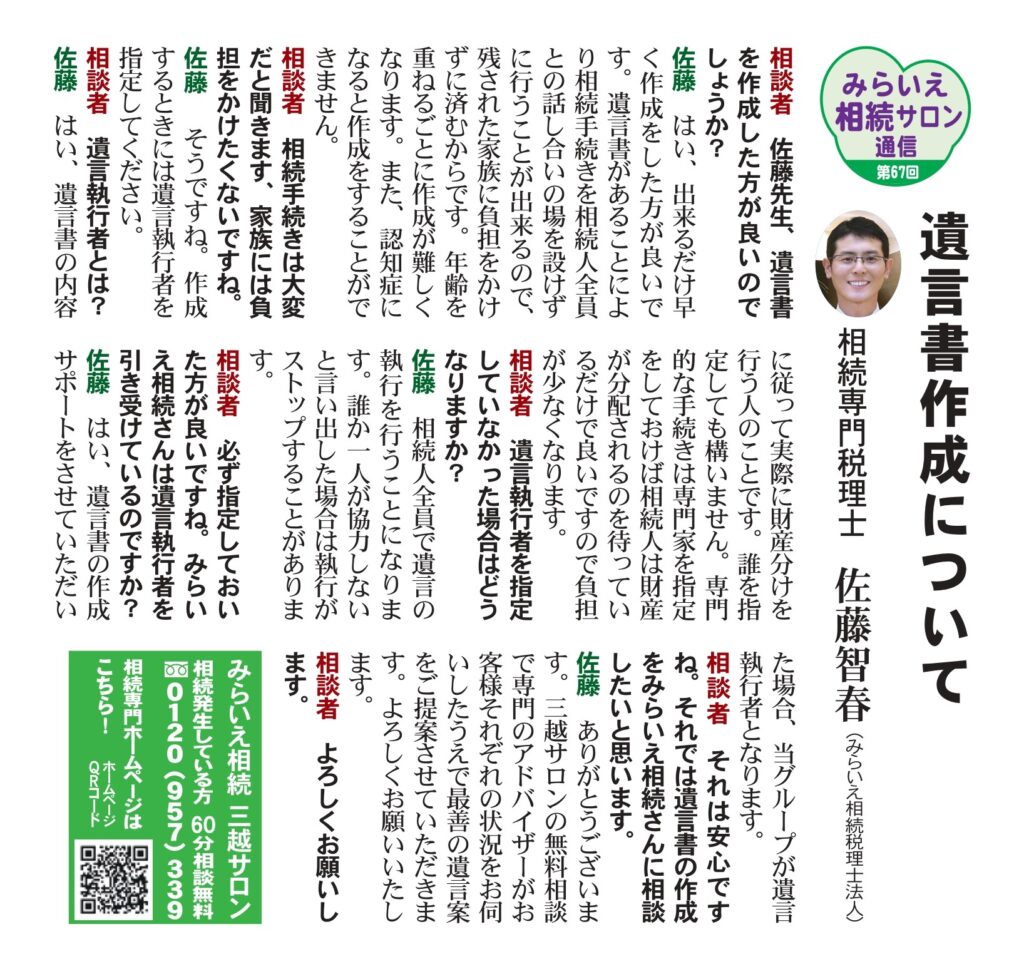 佐藤:そうですね。作成するときには遺言執行者を指定してください。